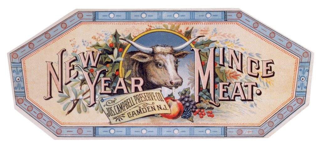 Label from “New Year Mince Meat” pie filling in the 1880’s
