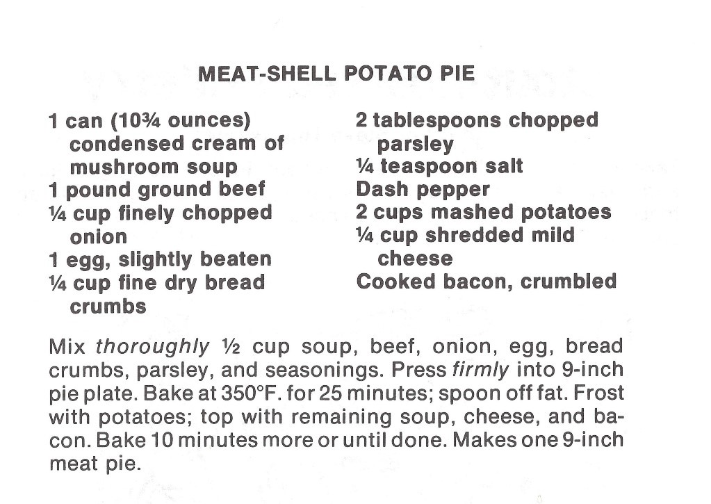 For the meat lovers out there, this inventive recipe uses Campbell’s Condensed Cream of Mushroom soup, and replaces the traditional pie crust with ground beef.