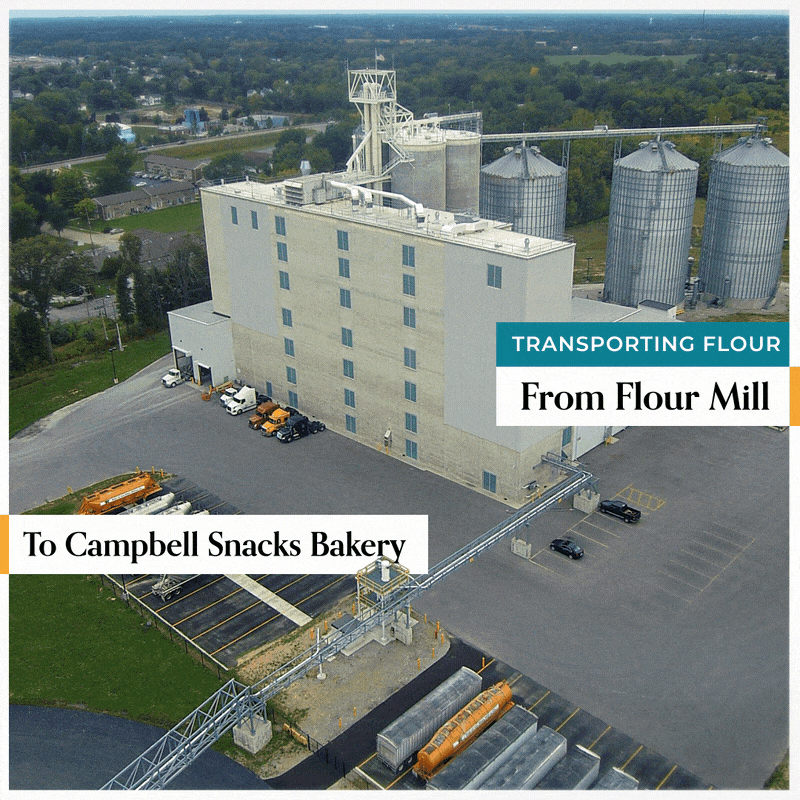 Because Star’s Willard mill is so close to our Willard Snacks bakery, the finished flour is sent over through sealed tubes directly connected to the bakery. This allows us to bake with freshly milled flour, while avoiding greenhouse gas emissions from trucks transporting the flour from mill to bakery.